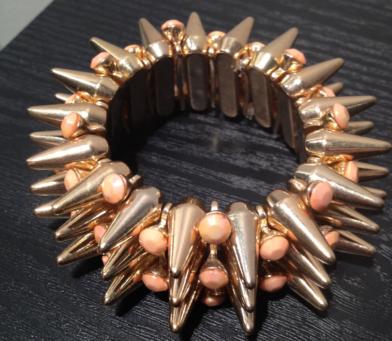 A lot of people are a bit scared of spikes since they're so harsh-looking. This bracelet from New Look (£7.99) has little coral beads embedded between the spikes, which makes it a bit less severe but still very cool. As you know, I'm a big fan of contrasting elements, for example, I think this looks amazing with either a soft flowing fabric, or tight top in pastel tones. Of course, it'd look awesome with a tight, black top but I'm trying to lean away from that.
